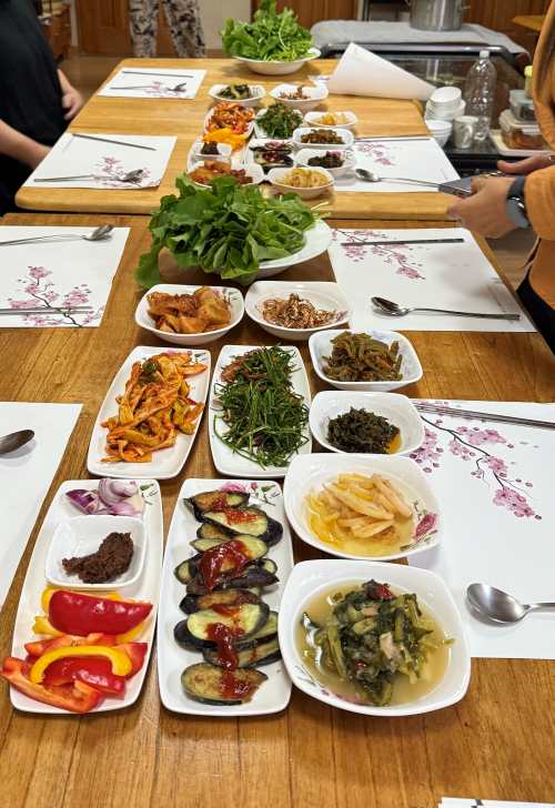 주인 아주머니께서 직접 키우신 채소, 산에서 직접 캐신 죽순, 밤. 된장.. 무엇보다 3년 묵은 김치라니...