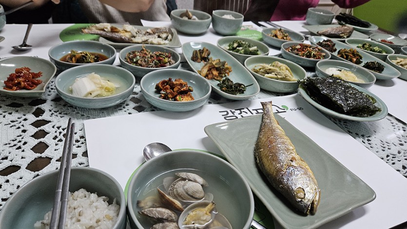 끝도 없이 펼쳐져 있는 감나무들을 보며 그 풍경에 취해 감도 따보고, 숲에 노니는 닭들과 개, 고양이를 보며 즐거워 하던 중 사장님은 어느새 직접 잡으신 닭으로 백숙을 준비하셨다. 그로부터 시작되어 매일 아침 계속되는 진수성찬! 남도의 음식이 왜 유명한지 알게 되었고, 바지락의 여왕이신 정사장님의 반찬솜씨는 여행은 집어치우고 요리강습을 받고 싶은 충동이 들게 하였다. 게, 조개, 고기, 병어, 굴비, 장어, 각종 나물로 이어지는 훌륭한 식사와 간식까지 사장님의 진심어린 배려와 사랑으로 존재하는지 몰랐던 입맛까지 살아나, 염체불구하고 포식을 하는 일주일이 계속되었다.