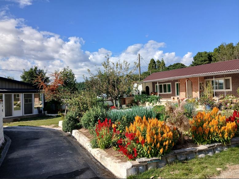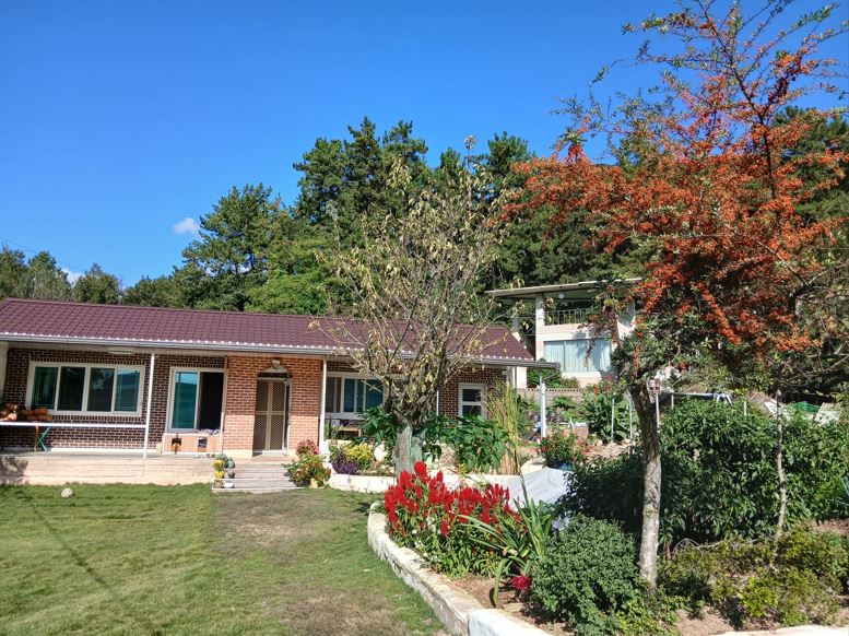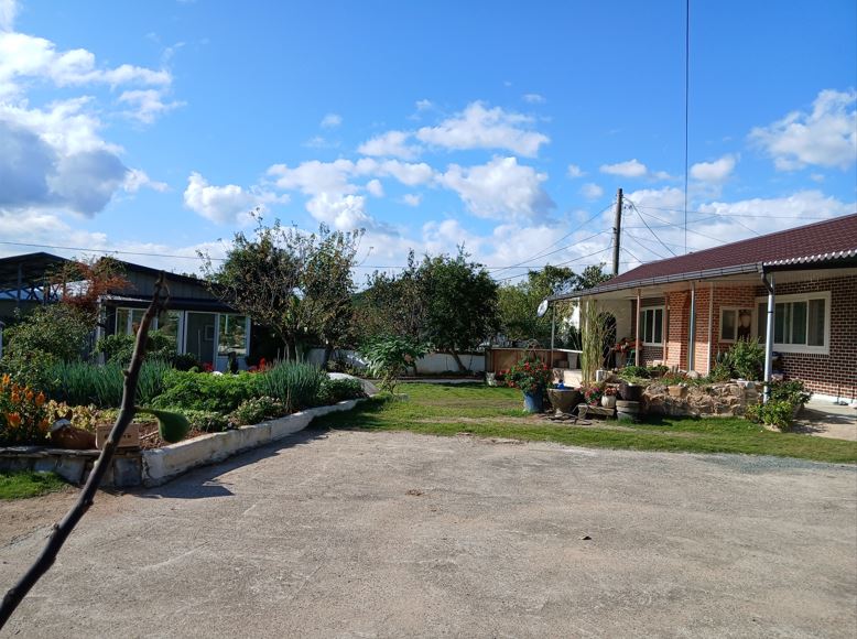 꼬불꼬불한 골목 끝에서 만나는 탁 트인 잔디마당의 <고향집>은 사장님의 어머니가 사셨던 사장님의 옛 고향집입니다. 사장님은 서울에서 20년간 지내시다가 내려오셨다고 합니다. 이 집에는 제비, 거북이 커플, 그리고 강아지까지 대가족이 함께 살고 있습니다.