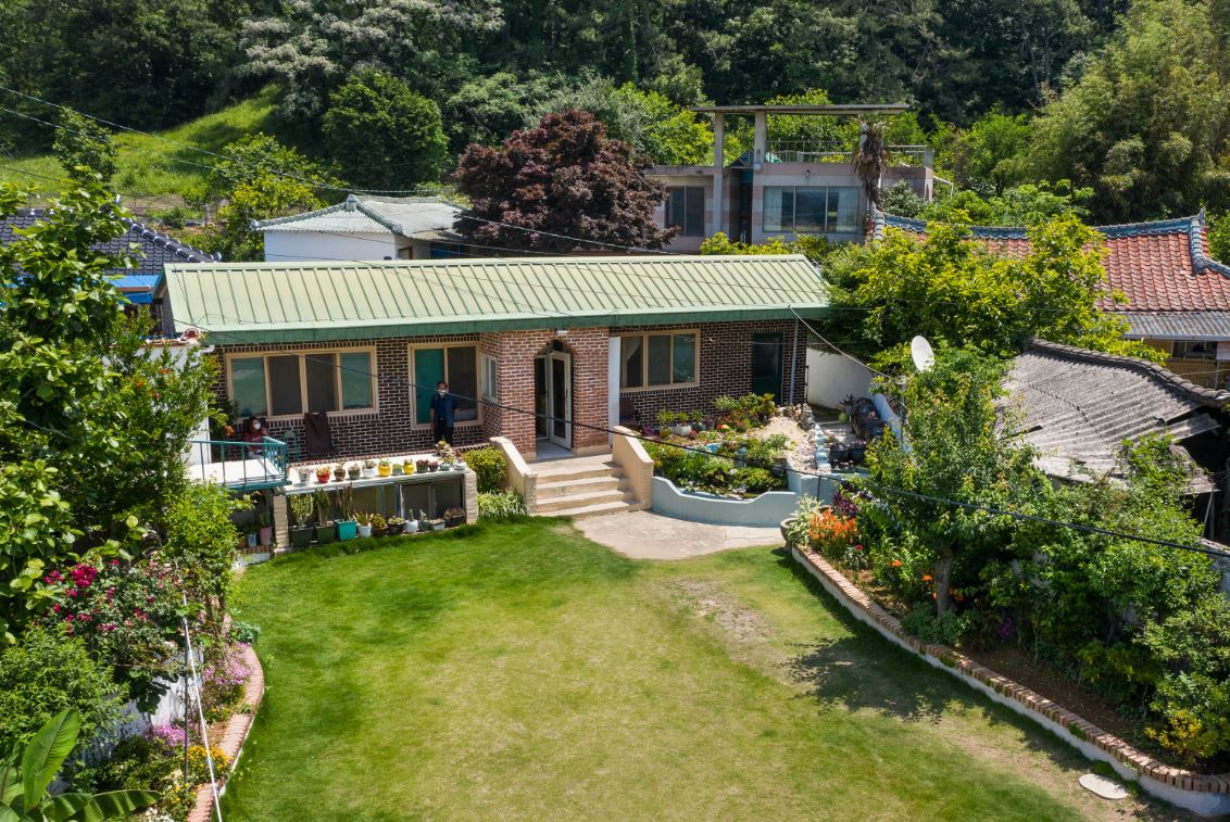 꼬불꼬불한 골목 끝에서 만나는 탁 트인 잔디마당의 <고향집>은 사장님의 어머니가 사셨던 사장님의 옛 고향집입니다. 사장님은 서울에서 20년간 지내시다가 내려오셨다고 합니다. 이 집에는 제비, 거북이 커플, 그리고 강아지까지 대가족이 함께 살고 있습니다.
